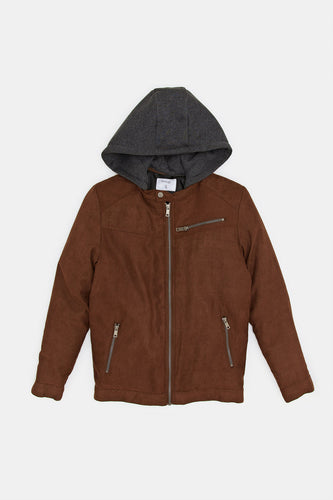 جاكيت بقبعة باللون البني للأولاد الصغار