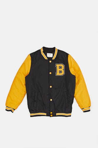 جاكيت بيسبول مزين باللون الأسود و المسطرد للأولاد الكبار