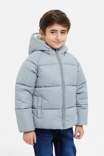 جاكيت بقبعة باللون الرمادي للأولاد الصغار