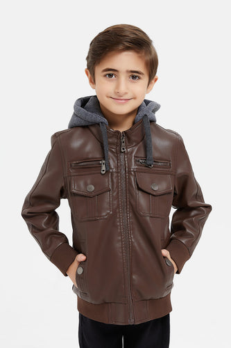 جاكيت بسحاب أمامي باللون البني للأولاد الكبار