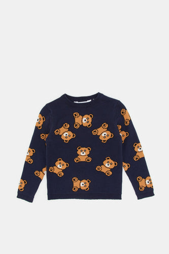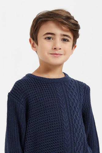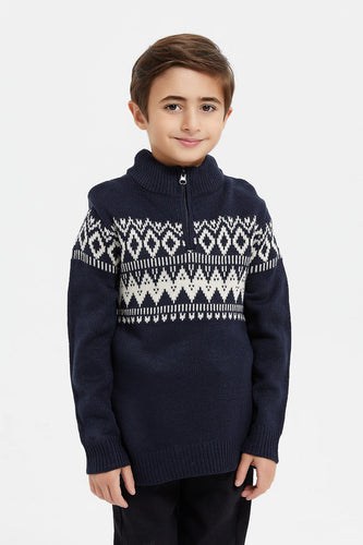 بلوفر محبوك باللون الكحلي للأولاد الصغار