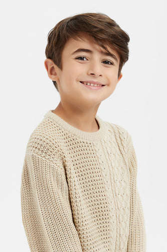 بلوفر محبوك باللون البيج للأولاد الصغار