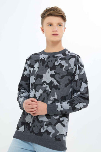 بلوفر باللون الرمادي مطبوع للأولاد الكبار