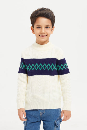 بلوفر بملمس بارز باللون الكريمي للأولاد