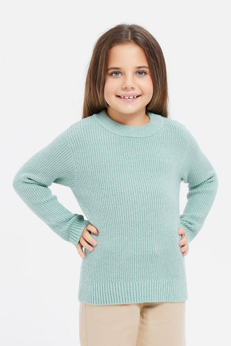 بلوفر برقبة دائرية باللون الأخضر للبنات الصغار