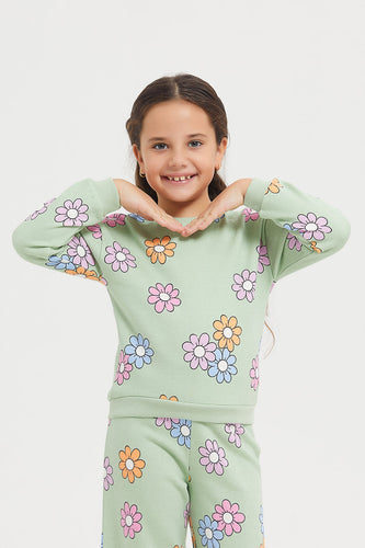 سويتشيرت مطبوع باللون الأخضر للبنات الصغار