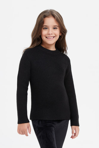 بلوفر برقبة دائرية باللون الأسود للبنات