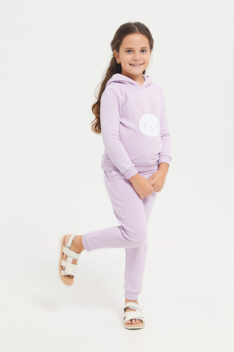 سويتشيرت بقبعة باللون اليلك للبنات الصغار