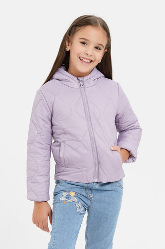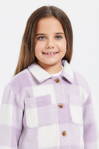 جاكيت كاروهات باللون الليلكي للبنات الصغار