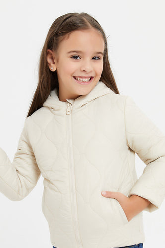 سويتشيرت مطبوع بقبعة باللون الأبيض للبنات الصغار