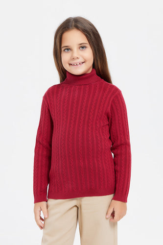 بلوفر سادة برقبة عالية باللون الأحمر للبنات الصغار