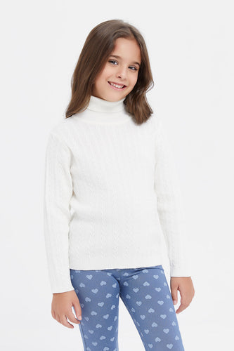 بلوفر برقبة عالية باللون الأبيض للبنات الصغار