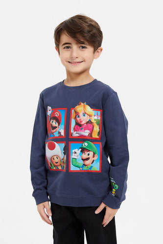 سويتشيرت بطبعة ماريو باللون الكحلي للأولاد الصغار
