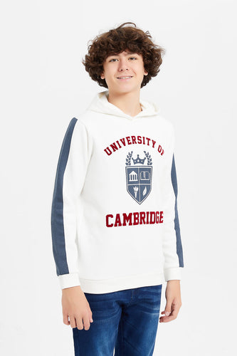 سويتشيرت بقبعة باللون الأبيض للأولاد الكبار