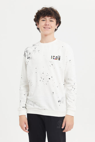 سويتشيرت مطبوع باللون الأبيض للأولاد الكبار
