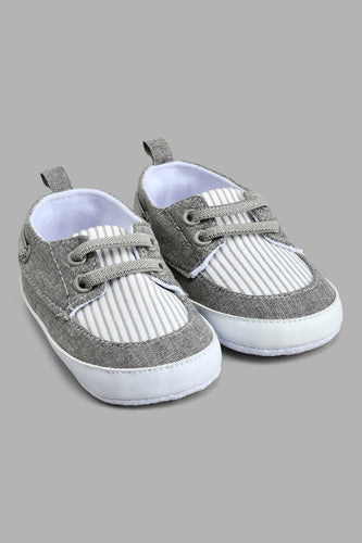 Grey Striped Pram Shoe حذاء باللون الرمادي مخطط