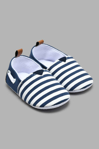 Navy And White Striped Pram Shoe حذاء باللون الكحلي والأبيض مخطط