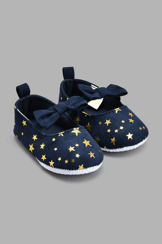 Navy Embellished Pram Shoe حذاء مزين باللون الكحلي