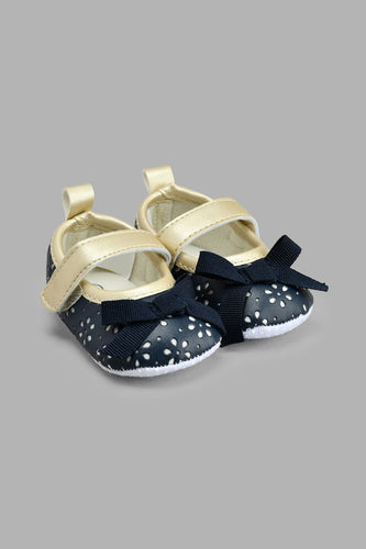Navy Pram Shoe With a Bow Trim حذاء باللون الكحلي بفيونكة