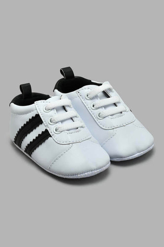 White And Black Slip-On Pram Shoe حذاء باللون الأبيض والأسود سهل الارتداء