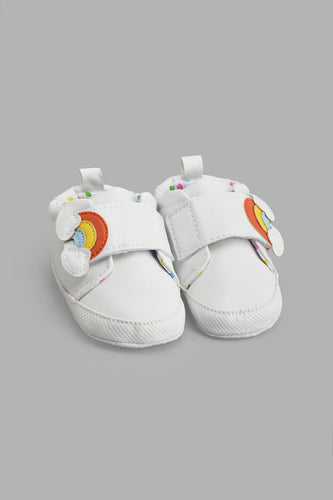 White Rainbow Pram Shoe حذاء مريح باللون الأبيض مزين بقوس قزح