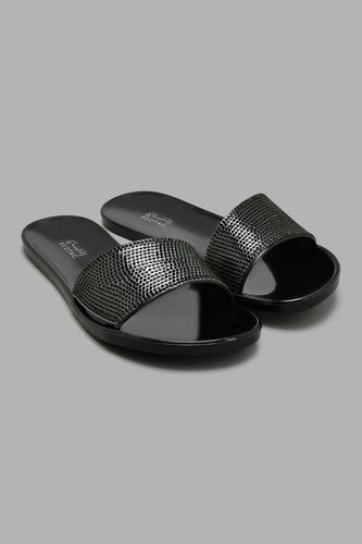 Black Embellished Jelly Mule حذاء مفتوح مزين باللون الأسود