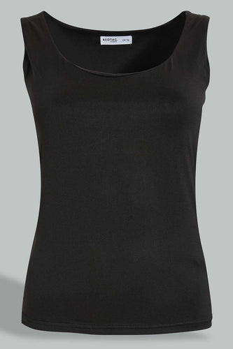 Black Double Layered Sleeveless T-Shirt For Women بلوزة بدون أكمام طبقتين باللون الأسود للنساء