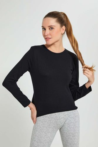 Black Plain Long Sleeve T-Shirt تيشيرت سادة باللون الأسود بأكمام طويلة