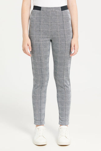 بنطال ضيق منقوش باللونين الأبيض والأسود للفتيات الكبيرات