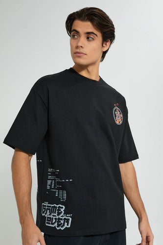 Black Printed Loungewear T-Shirt تيشيرت منزلي بطبعة باللون الأسود