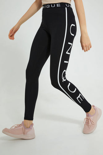 Black Skinny Side Print Legging ليغنغز طبعة باللون الأسود
