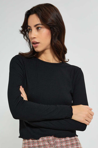 Black Ribbed T-Shirt تيشيرت مضلع باللون الأسود