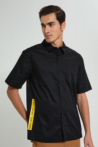 Black Short Sleeved Printed Casual Shirt قميص باللون الأسود بأكمام قصيرة