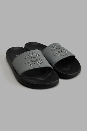 Black Slogan Embossed Slide شبشب منقوش باللون الأسود