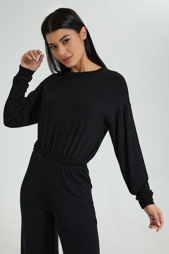 Black Sweatshirt With Elasticated Hem سويتشيرت باللون الأسود