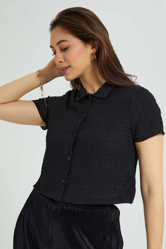 Black Smocked Blouse بلوزة باللون الأسود بأكمام قصيرة