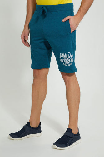 Blue Short With Placement Print شورت رياضي بطبعة باللون الأزرق