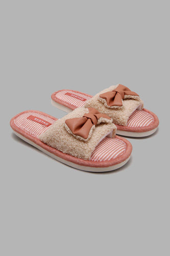 Blush/Beige Bow Slippers شبشب خفيف فرو باللوني البيج والوردي