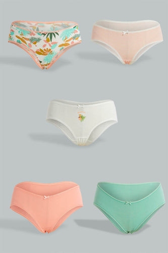 Assorted Printed Boyleg Briefs (Pack Of 5) طقم سراويل بخصر قصير مطبوع بألوان متنوعة (5 قطع)
