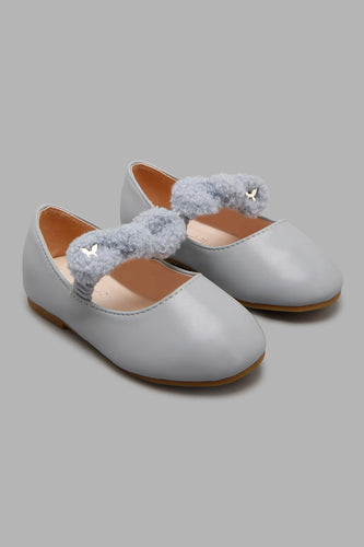 Grey Bow Trim Ballerina حذاء باليرينا باللون الرمادي بفيونكة