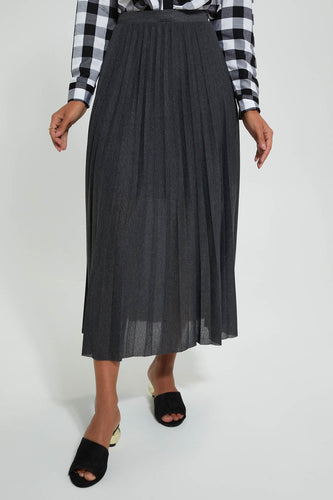 Grey Pleated Midi Skirt تنورة بكرسات باللون الرمادي