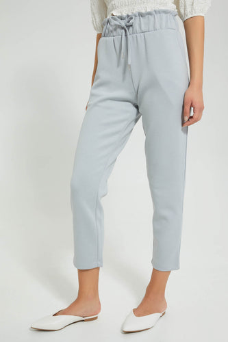 Grey Paperbag Waist Trouser بنطلون بخصر عالي باللون الرمادي