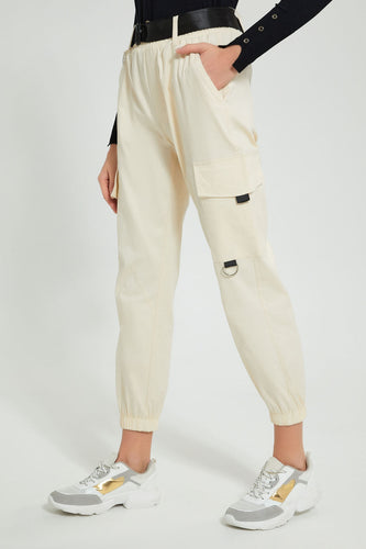 Ivory Belted Cargo Jean جينز كارجو بحزام باللون العاجي