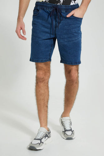 Indigo Pull On Shorts شورت جينز بخصرمطاط باللون الأزرق