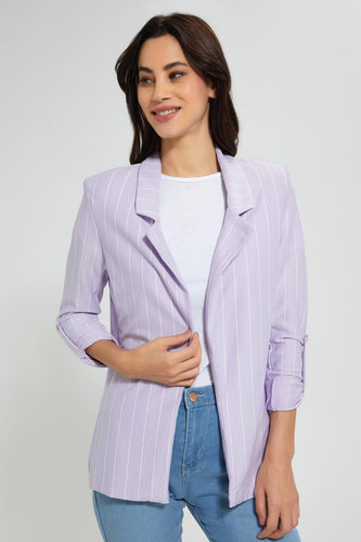 Lilac Stripe Rolled Up Sleeve Jacket جاكيت مخطط باللون الليلك
