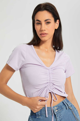 Lilac Ruched Front Top تيشيرت مزمزم باللون الليلك