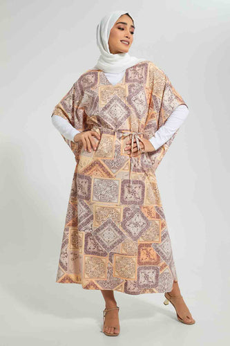 Multicolour Printed Satin Dress فستان بألوان متعددة ستان