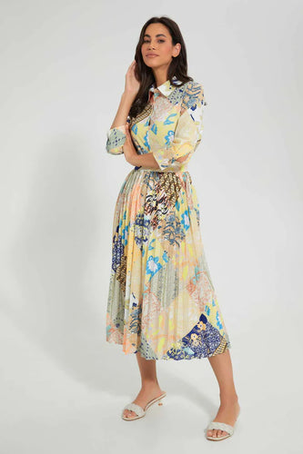 Multicolour Pleated Dress فستان كسرات متنوع الألوان