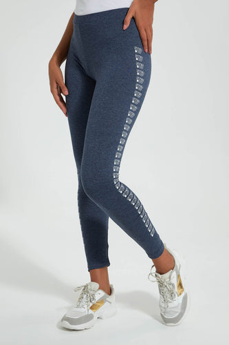 Navy Side Print Legging بنطلون ليجينجز مطاطي مطبوع كحلي