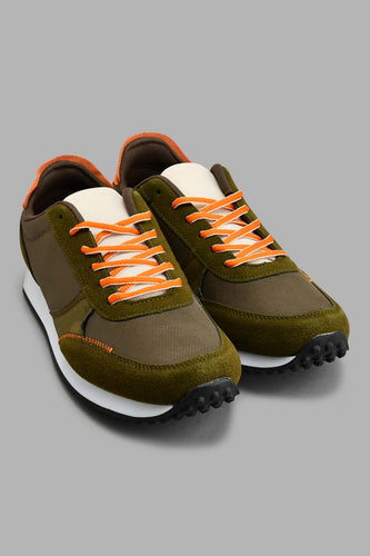 Olive Fabric Block Sneaker حذاء سنيكرز باللون الزيتي
